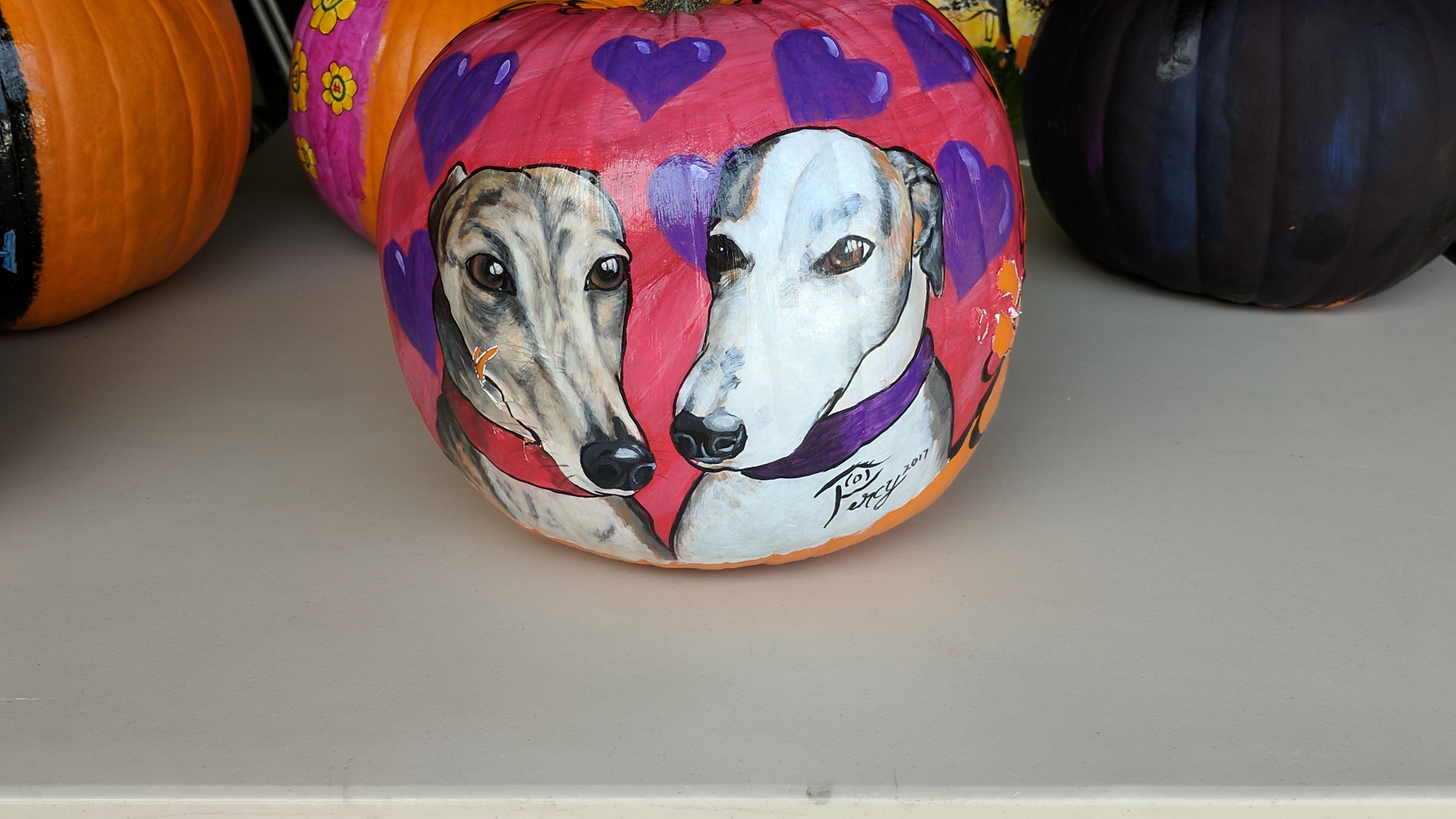 You can get a pumpkin and socialize with other greyhound owners and help support GEM and TGIE.